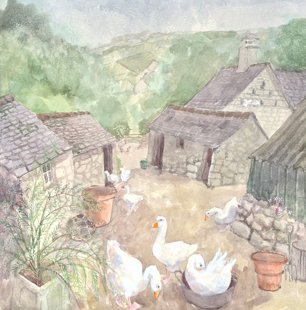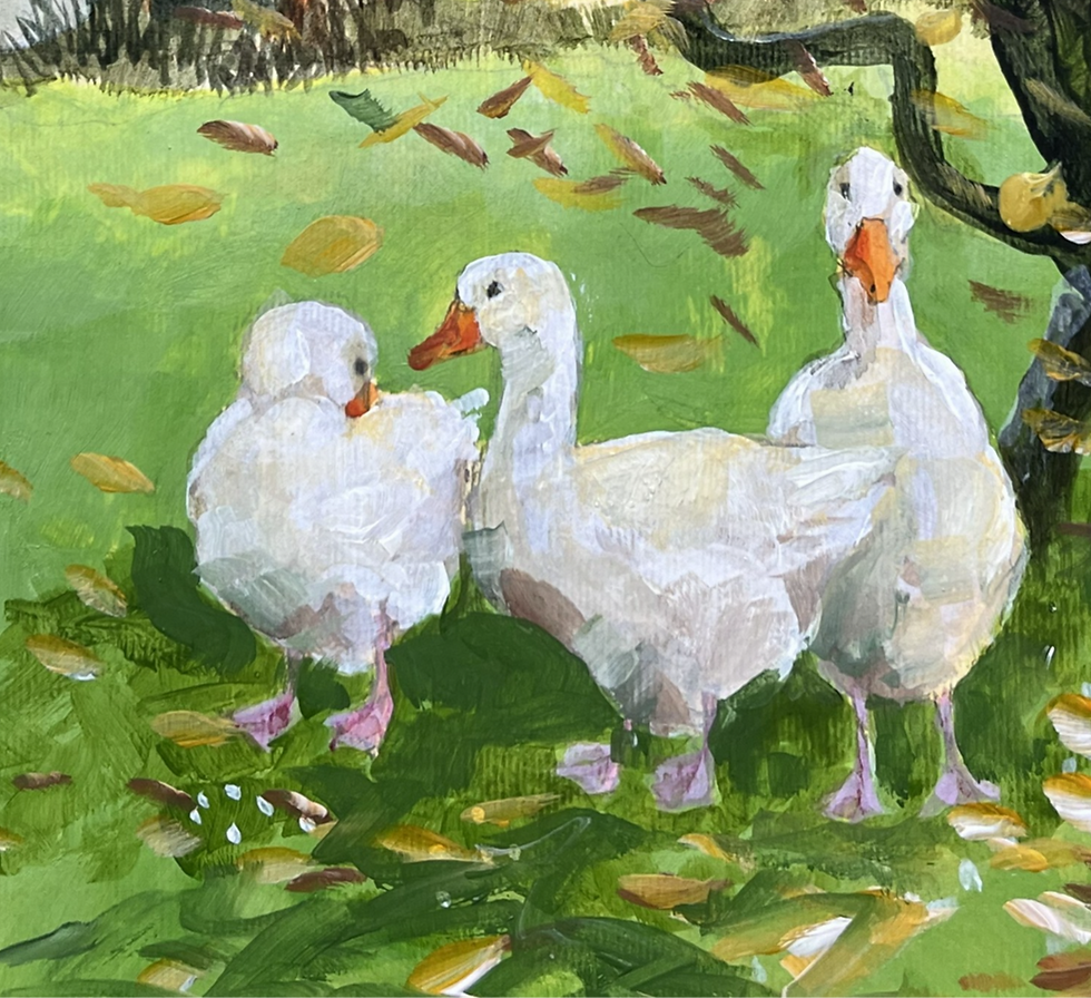 Here are some of my autumnal paintings featuring one of my favorite times of the year. I love the colors and the weather. Yhe animals and birds that you see in these paintings are some of the creatures that I keep on my small holding down here in Falmouth.